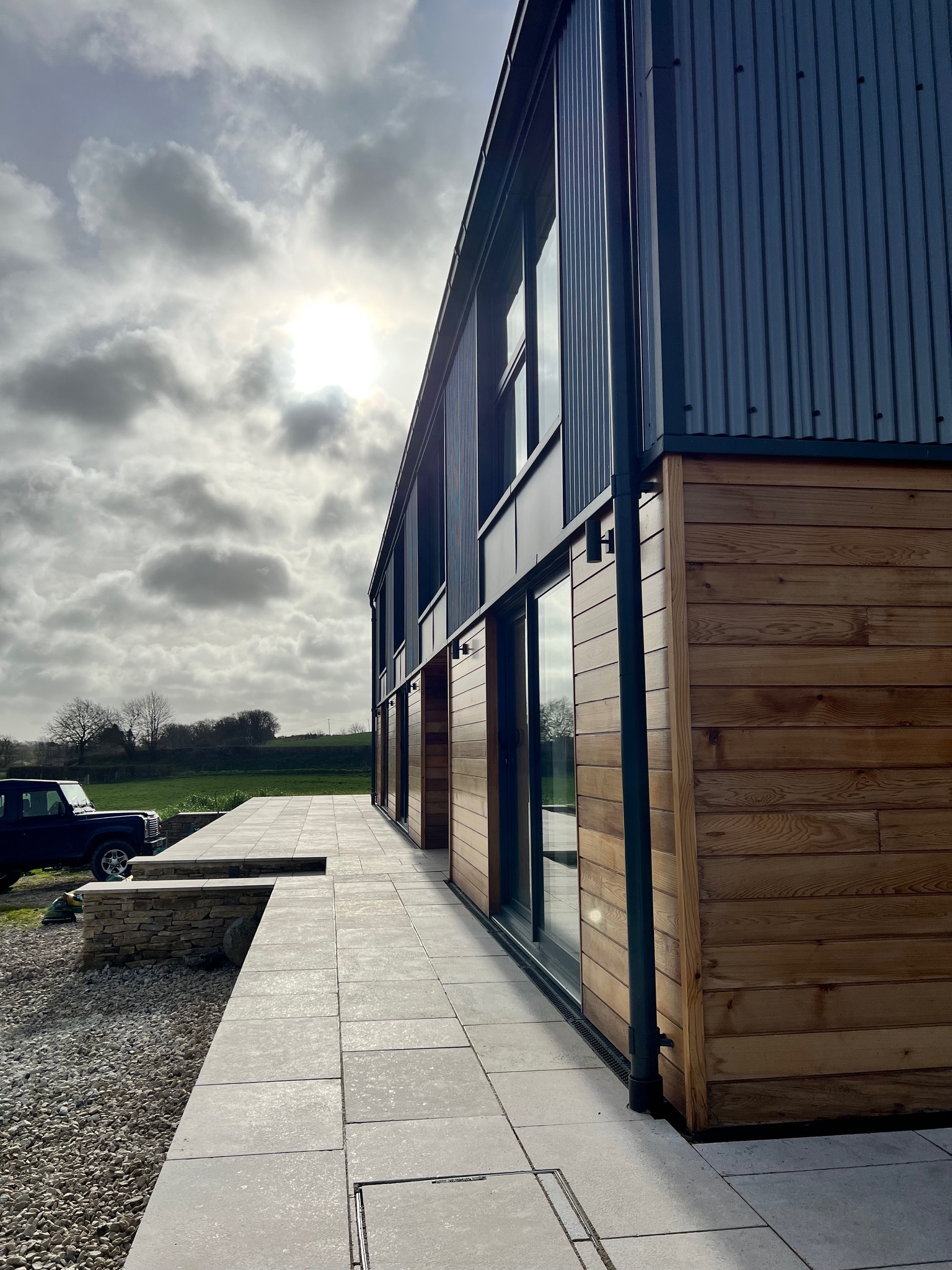 This project, Initially a cattle shed, has been transformed into an energy efficient modern barn. The Green coat PLX walls and roof ensure optimal insulation, while the integration of Air Source Heat Pump (ASHP), Mechanical Ventilation with Heat Recovery (MVHR), and solar panels significantly reduce energy consumption.